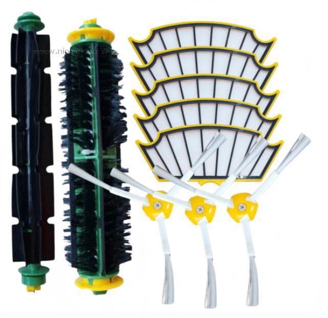 10ks Sada filtrů a kartáčů pro iRobot Roomba 500 / 625 PROSada obsahuje 1x hlavní kartáč gumový, 1x hlavní kartáč štětinový, 5x filtr, 3x boční kartáček a je určena pro vysavače iROBOT Roomba 500 Serie. Díky tomuto příslušenství je schopen váš robotický vysavač dobře zachytit prach i další nečistoty. U kartáčů je vhodné je vyměnit mezi 6 až 12ti měsíci - v závislosti na četnosti využití vysavače a druhu vysávaného povrchu. HEPA filtr je doporučeno měnit každé 3 nebo 4 měsíce. - sada příslušenství pro iRobot Roomba 500 Serie a 625 PRO