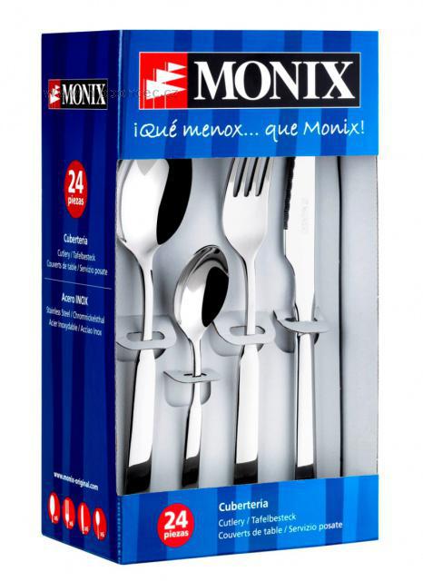 Kvalitní sada příborů Monix Diner je vyrobená kováním a lisováním z nerezové oceli. V nejtenčím bodě činí tloušťka minimálně 1,8 mm. Sada příborů je vyrobena v EU. Obsah balení - 6x polévková lžíce, 6x kávová lžička, 6x vidlička, 6x jídelní nůž