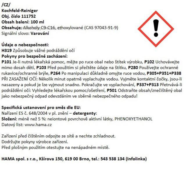 Postup čištění dle doporučení výrobce: vždy čistěte jen vychladlé varné desky a před prvním použitím vyzkoušejte čistič na nenápadném místě. Na odstranění hrubých nečistot použijte škrabku. Malé množství čistícího prostředku naneste na papírovou utěrku, rozetřete na znečištěná místa, nechte krátce působit a setřete vlhkou utěrkou. Povrch desky vyleštěte přiloženou utěrkou z mikrovlákna. Utěrku z mikrovlákna je možné přeprat v ruce.
