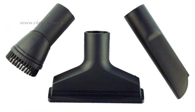3 malé hubice pro vysavače různých značek - 32 mm, štěrbinová, na čalounění a kartáč Sada tří mini hubic pro vysavače s trubkami o průměru 32 mm obsahuje: 1x štěrbinovou hubici, 1x polštářovou hubici na čalounění a 1x kulatý kartáč. Hubice jsou určeny pro všechny vysavače s průměrem tyče 32 mm. Průměrem trubek 32mm jsou obvykle osazeny vysavače výrobců: ELECTROLUX, ROWENTA, AEG, ARLETT, BRAVO, BORK, BOMANN, CLATRONIC, CONCEPT, DAEWOO, DIRT DEVIL, ELECTROLUX, ETA, GALLET, HITACHI, HUSQUARNA, HYUNDAI, LUX, MAKITA, MOULINEX, MIOSTAR, NILFISK, NUMATIC, PROGRESS, ROWENTA, SENCOR, THOMAS, VAX, ZANUSSI a další značky.