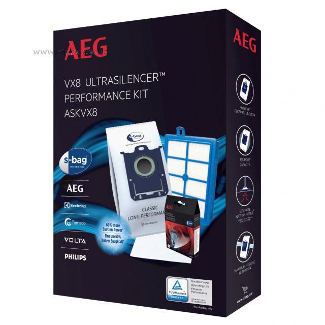 AEG ASKVX8:HEPA Filtr H13 + sáčky s-bag v originál setu pro vysavače UltraSilencer a další Originální sada sáčků, HEPA filtru a filtrů obsahuje : 1 ks hepa filtr omyvatelný H13, 4x sáček S-Bag z netkané textilie do vysavačů, 4ks vůně do vysavače a mikrofiltr . Sada pasuje do všech vysavačů PHILIPS, ELECTROLUX, AEG, osazených obdélníkovým HEPA filtrem typu EFH a sáčky s-bag.- 4x textilní sáček do vysavače S-bag® Classic Long Performance - odpovídá (E201B)