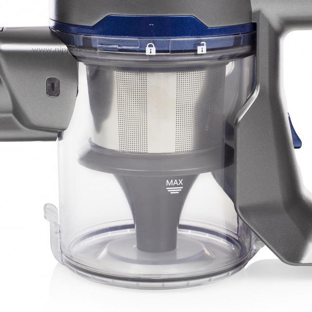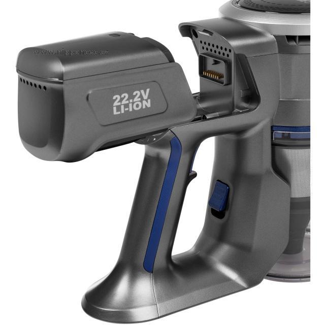 Nechybí omyvatelný filtr, kombinovaný kartáč na nábytek a na sokly a motorizovaný kartáč včetně adaptéru. Je napájen Li-Iontovou baterií s napětím 22,2 V. Doba jejího plného nabití je 4 hod. Na plné nabití vydrží vysávat 32 minut. Součástí balení je nabíjecí držák na stěnu, ve kterém je umístěno příslušenství v podobě štěrbinového a čtvercového nástavce.