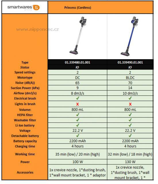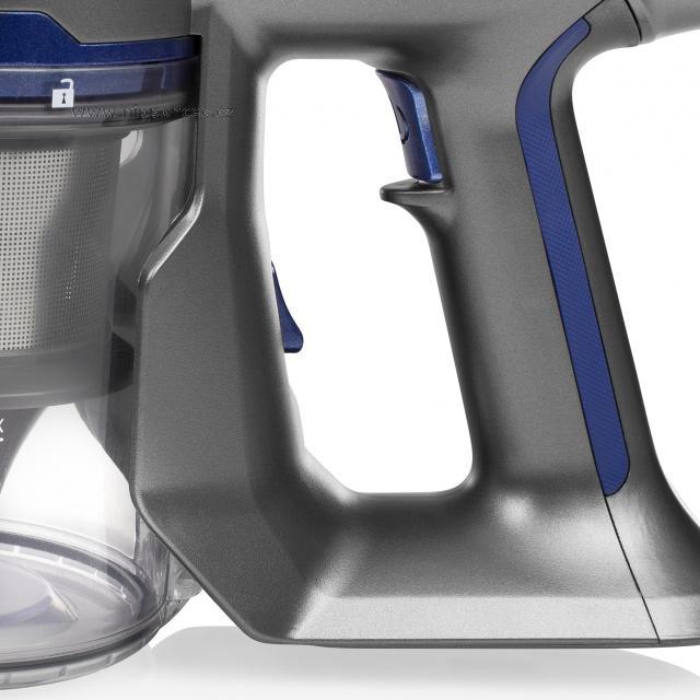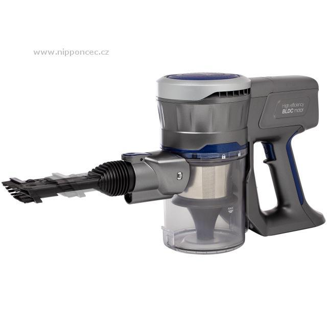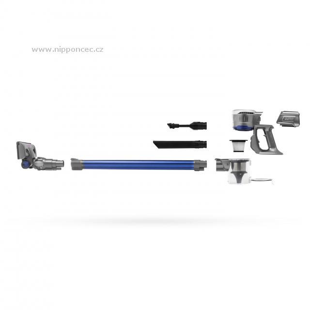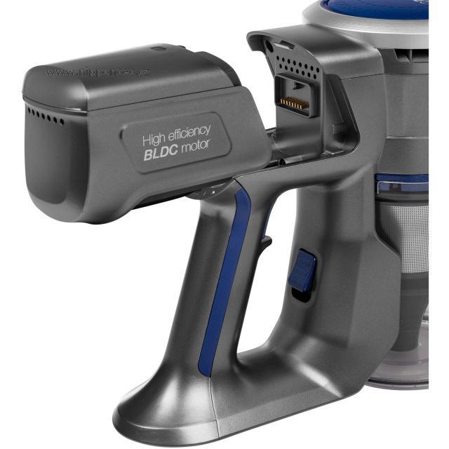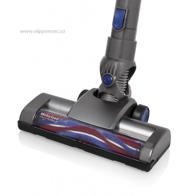 Dále nechybí omyvatelný filtr, kombinovaný kartáč na nábytek a na sokly a motorizovaný kartáč včetně adaptéru. Je napájen Li-Iontovou baterií s napětím 22,2 V. Doba jejího plného nabití je 4 hod. Na plné nabití vydrží vysávat 32 minut. Součástí balení je nabíjecí držák na stěnu, ve kterém je umístěno příslušenství v podobě štěrbinového a čtvercového nástavce.