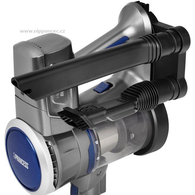 Praktický, tichý a vysoce výkonný. Takový je bezkabelový vysavač Princess 33 9490. Pohání ho bezkartáčový motor BLDC, který je znán pro svou dlouhodobou životnost a vyšší spolehlivost provozu. A právě ten zajišťuje extrémně vysoký sací výkon vysavače. Objem sběrné nádoby na prach činí 800 ml. Tu lze snadno a hygienicky vysypat.