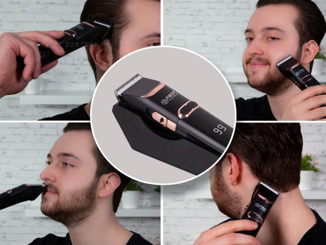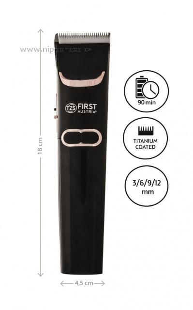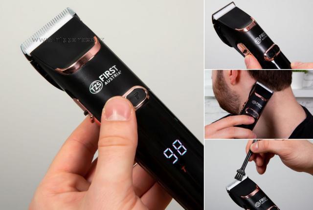 Bezdrátový zastřihovač vlasů a vousů First Austria FA-5676-7 je vybaven výkonnou baterií, která vám umožní až 60 minut provozu. Strojek disponuje nastavitelnou délkou střihu a součástí jeho příslušenství jsou 4 přídavné hřebeny ( 3, 6, 9, 12 mm), olej, čistící kartáček, stojan a napájecí adaptér. LCD displej informuje o stavu nabití baterie.