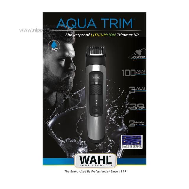 Kvalitní zastřihovač vousů a vlasů od známého amerického výrobce, určený pro evropský trh - Wahl 1065-0460 Aqua Trim, je nepostradatelným pomocníkem každého muže, který pečuje o svůj vzhled a rovněž šetří svůj čas. Tento akumulátorový voděodolný zastřihovač je vybaven nerezovými noži a rotačním motorem. Na zastřihovači lze nastavit až 39 různých řezných délek (od 0,7 do 20 mm) pro ještě lepší tvarování vousů a stříhání vlasů. Model Aqua Trim se nebojí vody, a tak ho lze použit ve sprše, umýt a vyčistit pod tekoucí vodou. Lithium-Ion baterie se postará o dlouhou výdrž baterie (100 min.) a krátkou dobou nabíjení (expresní nabíjení za pouhé 3 min., plné nabití za 60 min.). Přístroj Wahl 1065-0460 Aqua Trim se dodává s černým pouzdrem, dvěma nástavci, akumulátorovou (lithium-ion) nabíječkou, hřebínkem na vousy, čisticím kartáčkem, olejem na ostří a manuálem.
