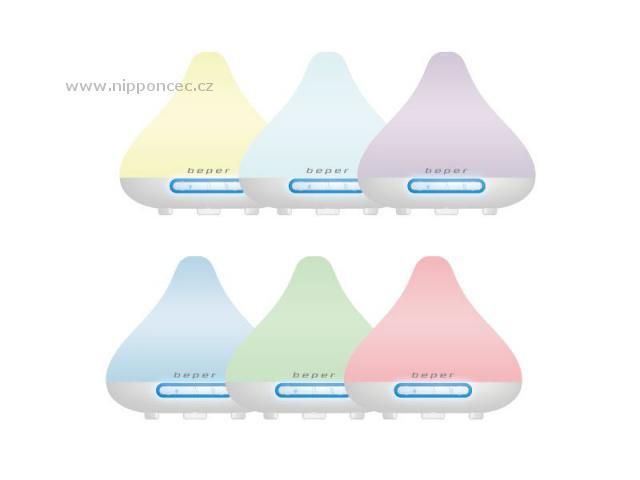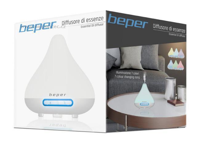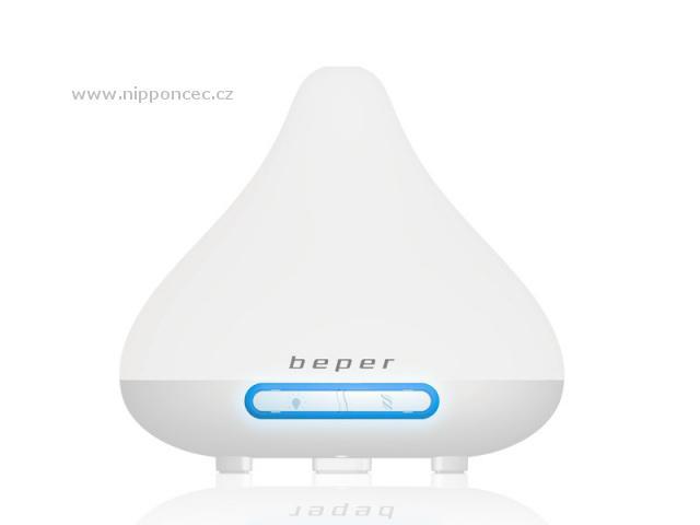 Minimalistická aroma lampa BEPER 70402 se zvlhčovačem vzduchu a LED osvětlením navodí příjemnou atmosféru a provoní váš domov. Osvětlení se sedmi pastelovými barvami je možné nastavit plynule měnící se nebo jednotlivě. Difuzér je opatřen zásobníkem na vodu o objemu 140 ml a bezpečnostní pojistkou, která přístroj automaticky vypne při nedostatku vody. Zvlhčovací výkon činí 40 ml/hod a lze u něj nastavit dvě intenzity vývinu páry (silný a slabý).