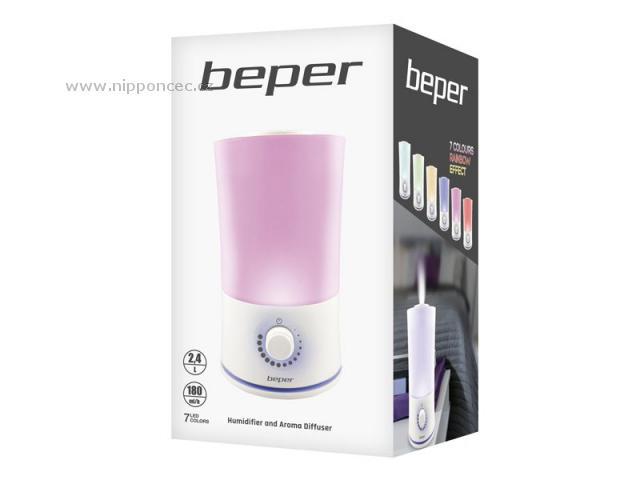 Aroma lampa a zvlhčovač vzduchu s LED světlem BEPER 70401 vám pomůže příjemně provonět domov nebo kancelář. Je ideální pro zvlhčení vzduchu a s přidáním aroma olejů vytvoří útulnou atmosféru. Aroma lampa má nádržku na vodu o objemu 2,4 l, v případě, že se voda vypaří, automatická pojistka zajistí její bezpečné vypnutí. Barevné podsvícení dotvoří příjemnou atmosféru, vybrat si můžete ze sedmi LED barev.