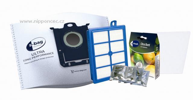 Sada sáčků a filtrů AEG-Electrolux ASKVX9 (USK9) pro Electrolux (AEG) UltraOne, Pure F9, VX9... S touto sadou vysavače s s-bag máte k dispozici všech, co potřebujete k čištění a údržbě vysavače. Sáček vysavače s-bag Ultra Long Performance vydrží až o 50% déle než tradiční papírové sáčky do vysavače. Vysoce kvalitní filtr HEPA je určen k tomu, aby udržoval výkon filtrace i sací výkon vašeho vysavače, a tím i uklízený prostor zdravější. AEG ASKVX Performance Kit - 4xsáček s-bag s mimořádnou životností, HEPA filtr H12 omývatelný, ,4x vonný sáček S-fresh™ Citrus Burst , 1x motorový filtr. Sáčky pro vysavače Electrolux (AEG) UltraOne, Pure F9, VX9... mají kapacitu 5L a podélné uložení. - Sada je vhodná pro všechny S-Bag vysavače využívající stejný typ HEPA filtru ( i pokud byl váš vysavač osazen klasickými menšími sáčky S-Bag 3,5 litru). Speciálně je ale určená pro vysavače Electrolux UltraOne a Pure D9 - tedy větší S-Bag sáčky s objemem 5 litrů a podélným uložením ve vysavači.