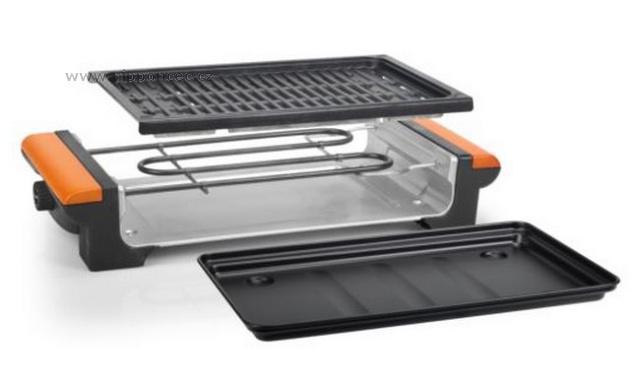 Barbecue gril TRISTAR BP 2825 s odnímatelným roštem s robustní grilovací plotnou z litého hliníku. Ideální pro grilování masa, zeleniny, ryb, drůbeže, opékání sendvičů, apod. Gril je vybaven miskou na odkapávající přebytečný tuk - grilované potraviny nebudou nasáklé, zůstanou dobře propečené a křupavé. Stolní barbecue gril Tristar BP 2825 má z boční strany vestavěný plynule regulovatelný termostat se světelnou kontrolkou pro správné nastavení teploty pro různé druhy potravin. Grilovací deska je vroubkovaná pro charakteristické opečení masa a pro dobrý odvod tuku, je potažena nepřipékavým povrchem na bázi teflonu. Rukojeti grilu jsou dřevěné, výrobek zaujme i svým vzhledem. Podnos a tuk lze mýt v myčce na nádobí, snadná údržba.