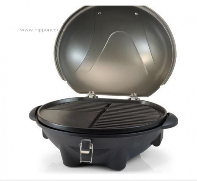 Grilovací plotna je vroubkovaná pro charakteristické opečení masa, jedna její čtvrtina je zcela hladká - tu můžete použít na přípravu bramboráků, palačinek, vajec, apod. Gril je robustní, vyrobený z kvalitních materiálů, jeho váha je 7,5 kg a je vybaven systémem pro stékání přebytečného tuku (do spodní části přístroje) - grilované potraviny tukem nenasáknou, jsou křupavé. Gril je snímatelný z podstavce, v případě nepřízně počasí jej lze použít i jako stolní v altánu či v domácnosti. Na podstavci je umístěn držák na dochucovadla nebo kuchyňské náčiní. Praktické víko je nejen dekorativní, ale v případě použití venku slouží i jako štít proti větru a nechtěnému ochlazování grilovací plotny, po použití gril lze zavřít, do výrobku se nedostane prach a jiné nečistoty. Stolek je skládací, nezabere mnoho místa. Povrch termostatu je odolný proti stříkání tuku.