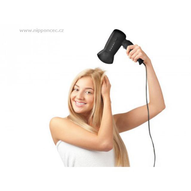 Cestoví fén Beper 40405 se sklopnou rukojetí a výkonem 1200 W se stane nepostradatelným společníkem na vašich cestách. Nabízí 2 rychlosti, 2 teplotní stupně a tlačítko proudění studeného vzduchu. Výhodou je 1,8 metrů dlouhá přívodní šňůra.