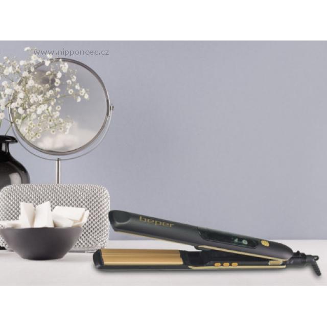 Přejete si mít dokonale rovné a lesklé vlasy? Keramická parní žehlička na vlasy Beper 40452 vám to splní. Díky využití vysokotlaké páry nepoškozuje vlasy jako klasická žehlička pro narovnání vlasů. Napouští do vlasů teplou vlhkost, to znamená, že pára proniká do vlasových folikul a vlas zůstává hydratován, zatímco keramické žehlící desky vyrovnávají vlasy. Zvolit můžete mezi 5 teplotními stupni od 180 do 230 °C nebo funkci páry vypnout. Je vybavena LCD displejem, otočnou přívodní šňůrou a poutkem na zavěšení.