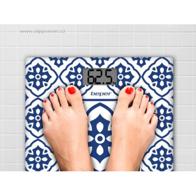 Digitální osobní váha BEPER P303BIP001 s květinovým vzorem majolika je vyrobena z 6 mm silného tvrzeného skla a hodí se do každé moderní koupelny. Disponuje velkým LCD displejem, automatickým zapnutím, vynulováním a vypnutím. Váží s přesností 0,1 kg, maximální nosnost je 180 kg.