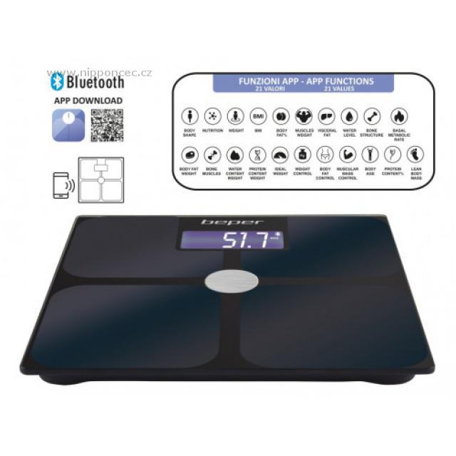 Chytrá osobní váha BEPER P303BIP050 a analyzér v 1 měří 21 tělesných indikátorů. Zobrazí nejen vaši aktuální váhu, ale dokáže vypočítat i svalovou hmotu, složení tělesného tuku a další parametry. Integrovaná technologie Bluetooth umožní pomocí aplikace ScaleUp (k dispozici pro iOS a Android) přenos dat do chytrého telefonu, navíc se synchronizuje s aplikacemi Google Fit a Apple Health. Vrchní panel váhy je potažen elektrodami oxidu india a cínu (ITO), extrémně citlivými a schopnými rychle a přesně posoudit složení těla. Analyzér vám poskytne informace o vašem těle a zdraví.