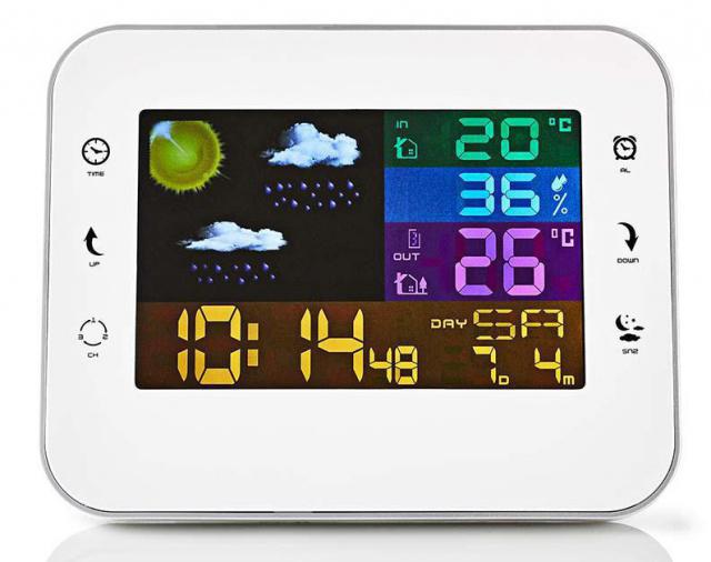 Univerzální, bezdrátová meteostanice Nedis poskytuje souhrnné informace nejen o teplotě venku či v místnosti, ale i informace o počasí, vlhkosti, či nabízí funkci budíku. Součástí balení je i bezdrátový snímač (je napájen dvěma AA bateriemi, které nejsou součástí balení), který je určen k snímání vnějších teplotních jevů. S bezdrátovým snímačem máte tedy přehled o vnější teplotě, vlhkosti a úrovni konfortu. Díky tomu máte ihned přehled o tom co si vzít na sebe. Meteostanice slouží také jako budík a s přehledem vzbudí nejednoho ospalce.