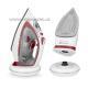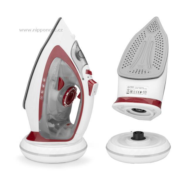 Bezdrátová napařovací žehlička First Austria FA-5633-4-RE se svítící základnou a keramickou žehlicí plochou, pro snadné žehlení i těch nejodolnějších záhybů. Žehličku lze použít bez kabelu nebo s přívodním kabelem. S využitím vertikálního napařování snadno odstraníte záhyby na vaší košili nebo šatech přímo na ramínku, aniž byste byli omezeni hledáním nejbližší zásuvky. Žehlička je vybavena systémem Anti-drip proti nechtěnému odkapávání, systémem Anti-calc proti zavápnění a nepřetržitým vývinem páry 20 g/minutu, maximálním výkonem páry 30g/min.