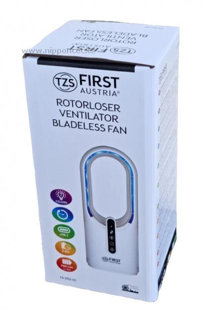 Bezlopatkový sloupový stolní ventilátor First Austria FA-5552-WI, LED osvětlení, nabíjecí USB-C