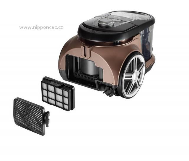 Extra tichý, bohaté příslušenství, omyvatelný HEPA filtr 13, sběrná nádoba 2,5 l.