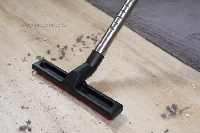 • Univerzální podlahová hubice dokonale vysaje veškeré koberce, předložky, běhouny nebo čalouněný nábytek. Pro vysátí tvrdé podlahy stačí přepnout klapku a vysunout štětiny.