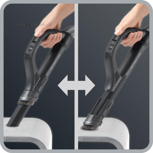 Bezsáčkový vysavač s těmi nejlepšími výsledky ve své třídě jak na kobercích, tak na tvrdých površích jako jsou parkety, lino nebo mramor. A s kombinovanou hubicí s přepínáním. Vysavač disponuje velkou prachovou nádobou o objemu 2,5 litru, ta postačí i na úklid velkého bytu nebo domu, proto nádobu není nutno tak často vyprazdňovat.