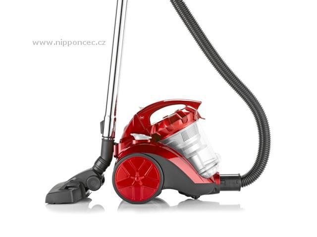 Bezsáčkový vysavač v jasně červené barvě je dodáván se širokou výbavou na vysávání koberců, vysávání tvrdých podlah (dlažba - lino - mramor - parkety). Navíc nepropouští zpět téměř žádný vysátý prach. Cyklonovou nádobu lze snadno vyprázdnit. Vysavač je osazený kovovými teleskopickými trubkami. Disponuje manuální regulací síly sání, součástí je i minihubice 2 v jednom - kartáčová a spárová. Kapacita zásobníku na prach činí 2 litry.