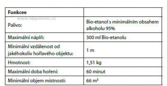 Tělo výrobku je kovové, hořák je z nerezové oceli. Bio krb Tristar má bezpečnostní tvrzené sklo o síle 3 mm, má samozahášecí efekt pro bezpečné použití.