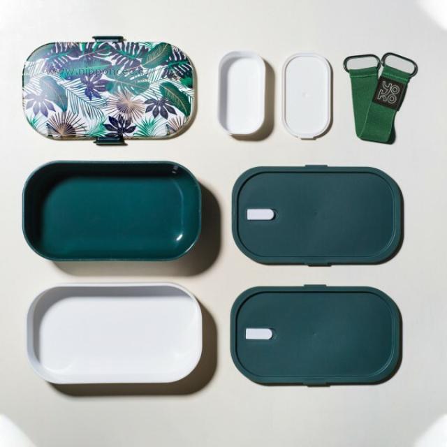 Bento box na jídlo Yoko Design Equador s originálním designem je ideální pro přenášení všech druhů potravin od salátů, přes omáčky až po dezerty. Skládá se ze dvou hermeticky uzavíratelných nádob, malého zásobníku na omáčku o objemu 95 ml a pružného pásku, který všechny části boxu spojuje do jedné. Nádoby dobře těsní díky silikonovému těsnění. Po použití krabičky snadno umyjete v ruce, nebo v myčce nádobí. Ekologický, neobsahuje BPA. Vhodný do mikrovlnné trouby a mrazničky. Lze mýt v myčce nádobí.