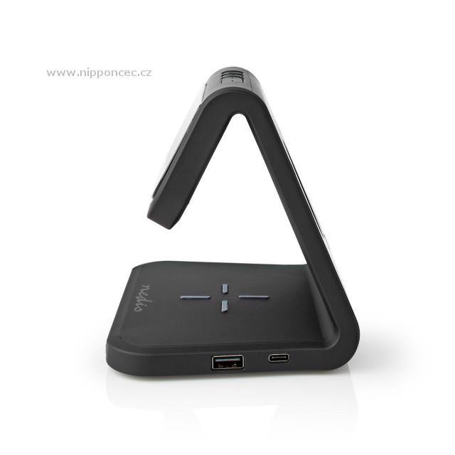 Budík, bezdrátová nabíječka a noční světlo 3v1 Nedis černý