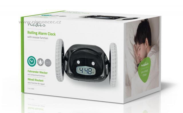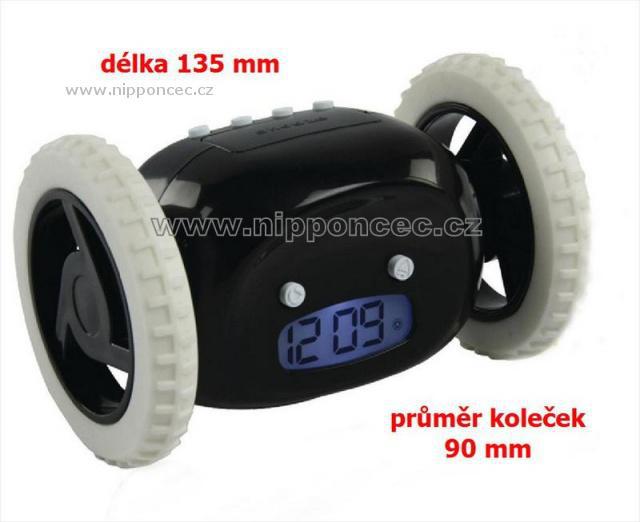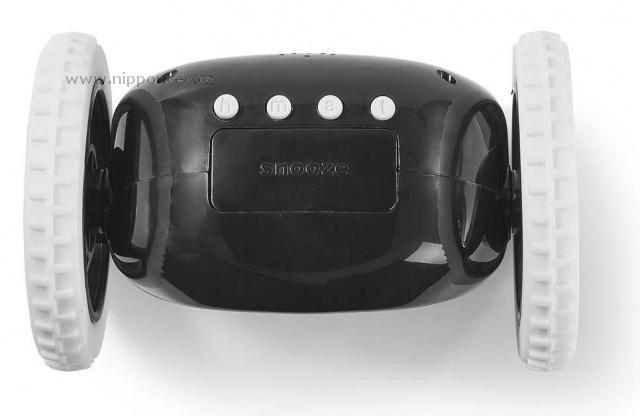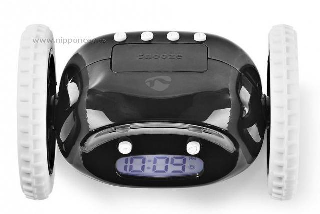 Budík na kolečkách. Máte problém s ranním vstáváním? Tento budík je ideální řešení. Jakmile se aktivuje zvonění, budík začne cestovat na vašem nočním stolku a pro zastavení zvonění jej musíte chytit. Bzučí a pohybuje se. Provoz na 4x mikrotužková baterie, není součástí.