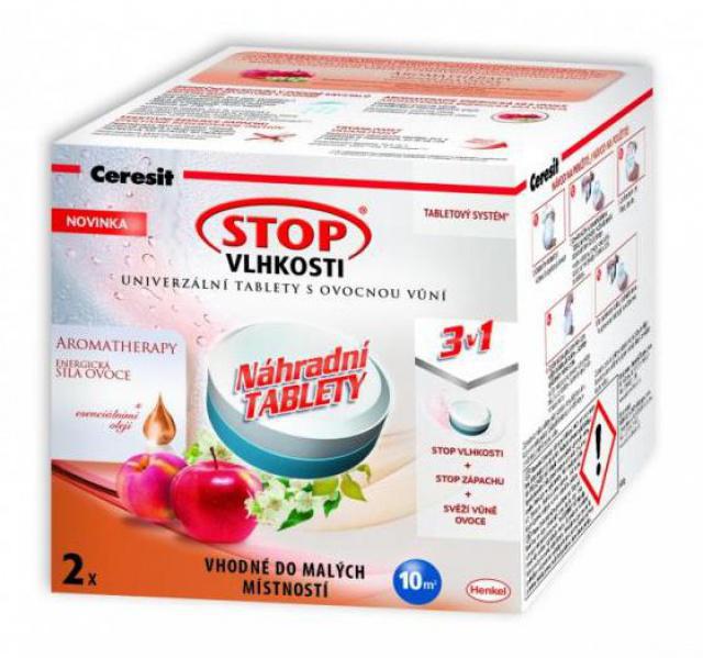 Nová generace absorpčních tablet do pohlcovače vlhkosti Ceresit STOP VLHKOSTI PEARL v balení 2 x 300 g s vůní ovoce. Nové tablety byly vyvinuté tak, aby jejich účinek pohlcování nadměrné vlhkosti byl vyšší až o 40% (po vložení do nového přístroje Ceresit Stop Vlhkosti Pearl). Díky členitému tvaru a proudění vzduchu okolo tablety jsou první absorpované kapky viditelné už po 12 hodinách. Tablety v přístroji se spotřebovávají postupně, zmenšují svůj objem. Vysrážená tekutina se soustřeďuje ve spodní části přístroje. Po spotřebování je potřebné vložit novou tabletu. Důležité je vkládat tabletu do nového přístroje PEARL po jeho otevření modrou stranou dolů. Modrá část účinně redukuje pachy, bílá část pohlcuje nadměrnou vzdušnou vlhkost. Díky vůni ovoce zároveň příjemně provoní váš domov.