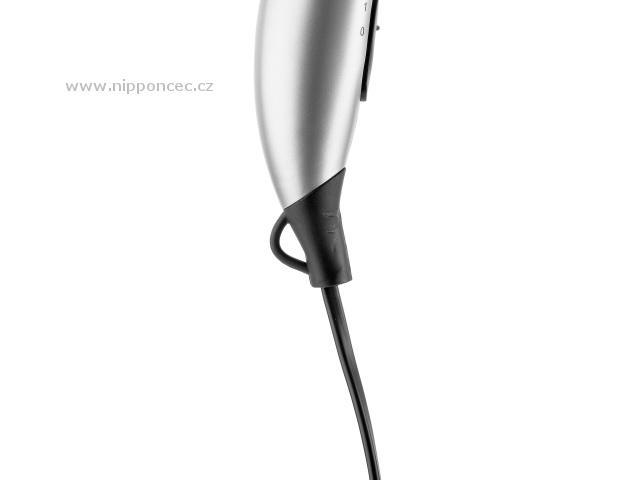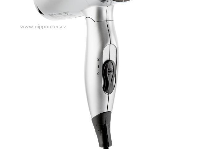 Na zadní části vysoušeče je umístěno očko pro zavěšení. Dlouhý flexibilní kabel zajišťuje komfortní použití vysoušeče i v místech, kde zásuvka je dále od zrcadla. Díky kompaktní velikosti a sklopné rukojeti ušetříte místo v zavazadle. Vysoušeč je možné použít s napětím od 220 V do 240 V.