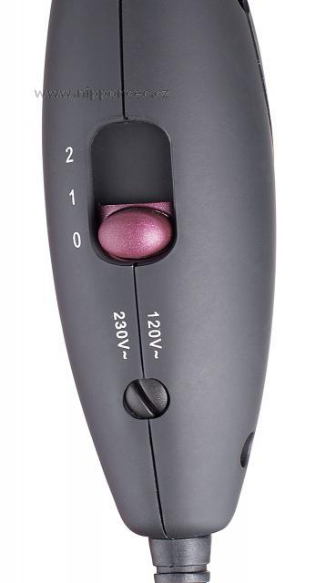 Na zadní části vysoušeče je umístěno a očko pro zavěšení. Šňůra fenu je otočná. Díky dlouhému přívodnímu kabelu je použití vysoušeče komfortní. Fén je vhodný i na cestování. Je vybaven přepínačem na 120 V neb 220 V. Dále je také vybaven bezpečnostní pojistkou proti přehřátí. Vysoušeč je oblečen do luxusní šedé barvy s jasně bílými s fialovými prvky za přiměřenou cenu.