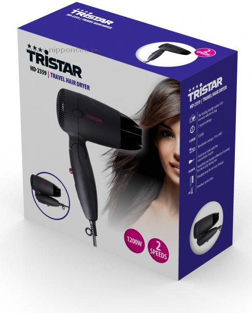 Vysoušeč vlasů Tristar cestovní je obohacen 2 rychlostmi a výkonem 1200 W. Součástí balení vysoušeče je směrovací tryska pro konečnou úpravu účesu. Fén má sklopnou ergonomickou rukojeť, proto vám ušetří spousta místa v zavazadle a uchopení je velmi pohodlné. Je lehký a malý, tedy snadno ovladatelný i pro menší ruku. Bivoltáž - 110 - 240V