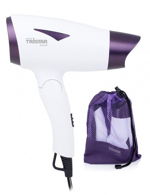 Vysoušeč vlasů Tristar cestovní, 2 rychlosti, s výkonem 1200 W. Součástí balení vysoušeče je směrovací tryska pro konečnou úpravu účesu. Fén má sklopnou ergonomickou rukojeť - šetří místo a dobře se drží. Je lehký a malý - snadno ovladatelný i pro menší ruku. Praktický je i síťovaný sáček na úschovu, kam můžete přidat i hřebeny a kartáče - v případě cestování. Bivoltáž - 110 - 240V