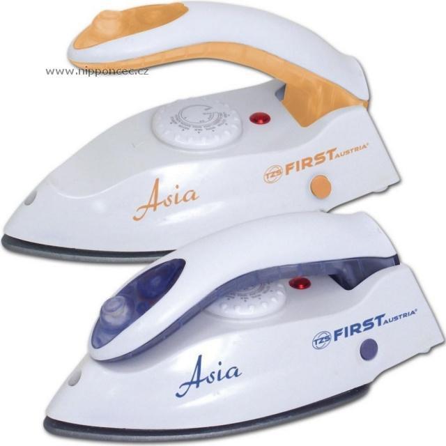 Malá cestovní žehlička FIRST Asia -  s funkcí napařování i žehlením nasucho, se sklopnou rukojetí, lehká a maličká - v zavazadle zabere málo místa. Praktický výrobek za příznivou cenu.