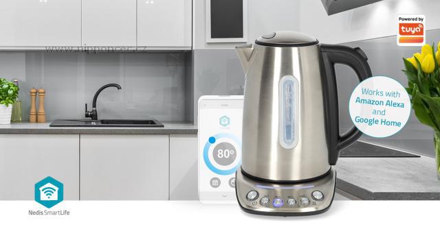 Zpříjemněte si váš každodenní život s touto chytrou rychlovarnou konvicí Nedis SmartLife. Připojte konvici k síti Wi-Fi a propojte s aplikací Nedis SmartLife. Díky kompatibilitě s Amazon Alexa nebo Google Home je možné si vychutnat pohodlí hlasového ovládání, takže vaše pauza na čaj je skutečně bez námahy. Speciální teplotní tlačítka na základně vám umožní vybrat si mezi 70, 80, 90 nebo 100 °C, což uspokojí různé preference nápojů. V aplikace Nedis SmartLife lze dokonce nastavit požadovanou teplotu s přesností na 1 stupeň v rozmezí od 1 do 100 °C. Funkce manuálního udržování teploty zajišťuje, že voda na váš horký nápoj zůstane na požadované teplotě po delší dobu.