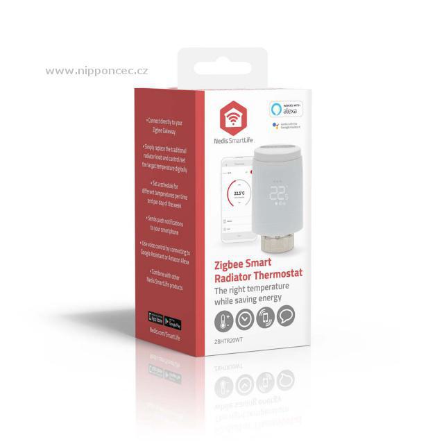 Termostatická hlavice pro chytré ovládání radiátoru Nedis SmartLife ZBHTR20WT je navržena tak, aby nabízela bezkonkurenční pohodlí a energetickou účinnost. Tento chytrý ventil vám umožní převzít kontrolu nad teplotou vašeho domova jako nikdy předtím. Aktuální teplota se zobrazuje na digitálním LED displeji. Pomoci aplikace Nedis SmartLife můžete nastavit vlastní teplotu v jednotlivých časech a dnech v týdnu. Ovládat přístroj můžete také hlasem nebo manuálně - fyzickým otáčením kolečka. Funkce otevřeného okna automaticky detekuje jakoukoli změnu teploty v místnosti. Jakmile teplota klesne, automaticky se přizpůsobí a dá vám vědět prostřednictvím aplikace ve vašem smartphonu. Funkce proti usazování vodního kamene plně otevře každé 2 týdny ventil na 30 s, aby byl ventil chráněn před usazováním vodního kamene. Instalace termohlavice je snadná, nejsou vyžadovány žádné speciální dovednosti nebo znalosti (elektrikářské nebo instalatérské). Instalační materiál je součástí balení.