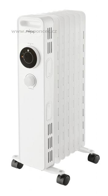 se 7 topnými články a příkonem 1500 W je ideální do prostor, kde potřebujete rychle přitopit nebo kde chybí běžné vytápění. Díky elegantnímu minimalistickému designu nenaruší interiér místnosti. Disponuje 3 stupni nastavení výkonu a tichým provozem, takže ho můžete využít i v ložnici, aniž by vás rušil během spánku. Zajisté oceníte i jeho bezúdržbový provoz. Největší výhodou olejových topidel je, že se rychle a rovnoměrně zahřívají a díky naakumulovanému teplu v nahřátém oleji poskytují teplo i po svém vypnutí.
