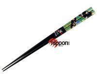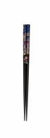 Lakované japonské jídelní hůlky v černé barvě s moderním motivem květů "haši". Konečky těchto japonských hůlek jsou v porovnání s hůlkami čínskými užší, což zjednodušuje uchopení sousta. Originální produkt, vyrobeno v Japonsku.