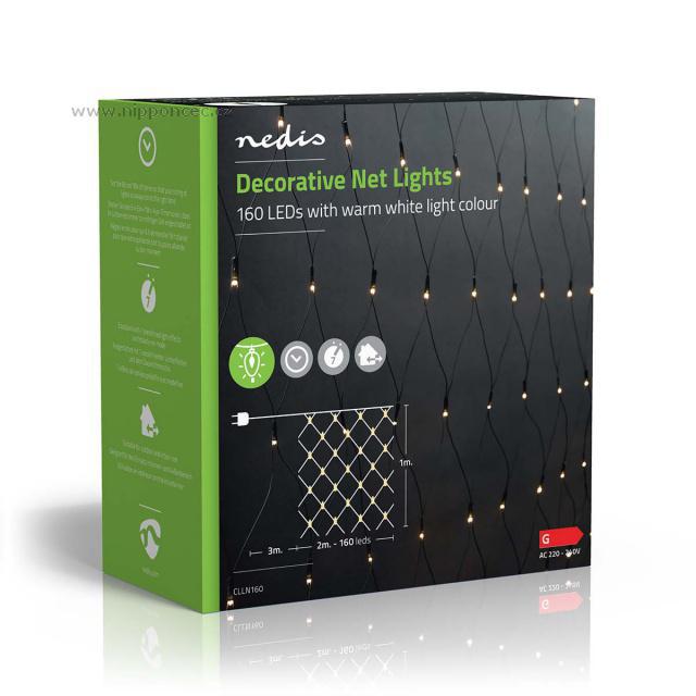 Vánoční síťová světla Nedis 160 x LED / 2 x 1 m