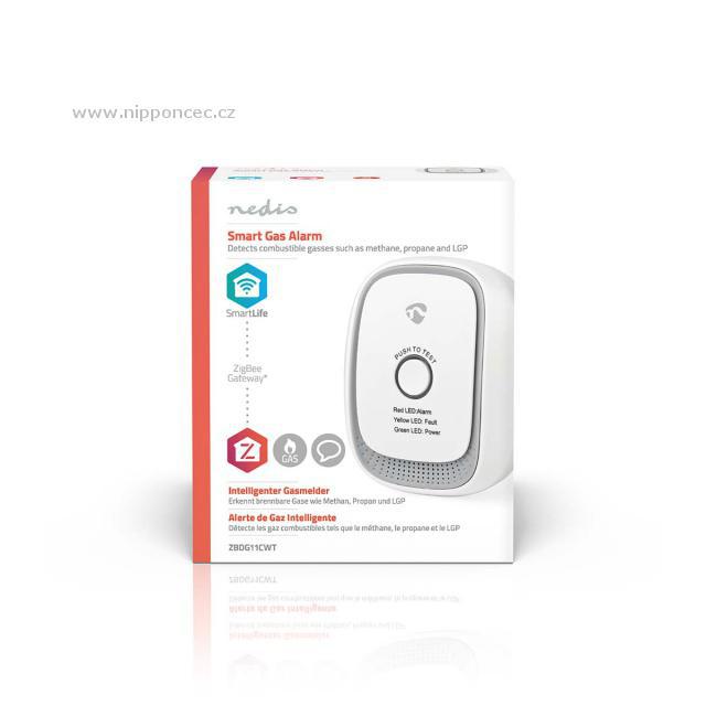 Detektor plynu SmartLife je detektor napájený ze sítě, který zvýší vaši bezpečnost. Vysoká citlivost čidla umožňuje detekovat minimální množství zemního plynu (metanu) a zajišťuje, že v případě zvýšené koncentrace plynu budete včas upozorněni alarmem o hlasitosti 75 dB. Dostanete také upozornění na telefon, ať jste kdekoli. K tomu je vyžadována brána Nedis Zigbee (WIFIZBxxx) a bezplatná aplikace Nedis SmartLife. Výsledkem je ochrana a pocit bezpečí pro Vás a Vaši rodinu, když jste doma. Umístění detektoru plynu je důležité, protože určité typy plynů stoupají nahoru a ostatní se drží u země. Vždy umisťujte detektor plynu blízko zdroje, například ke kotli ústředního topení, sporáku nebo plynovým lahvím. Detektor obsahuje testovací tlačítko pro pravidelné kontroly, tlačítko vypnutí zvuku pro ztišení alarmu na 5 minut, když je situace pod kontrolou, a jakmile se bude blížit konec životnosti (po cca 5 letech), budete upozorněni jak vizuálně pomocí LED indikátorů na detektoru, tak v aplikaci.