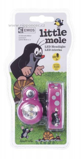 Dětská čelovka Krtek 3 x LED růžová