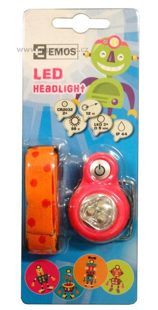 Dětská čelovka Emos Puntíky 3 x LED růžová