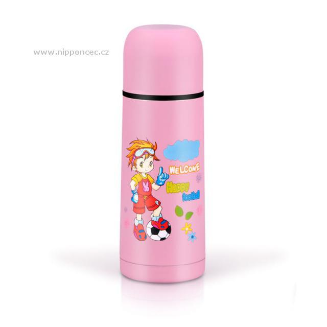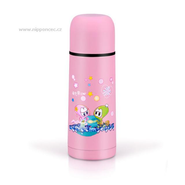 Nerezová termoska s dětským motivem, vakuově izolovaná, se zdvojenými stěnami, udrží teplotu nápoje pro mnoho hodin. Vhodná na cestu do školy i na cestování. Víčko slouží jako kalíšek. Odolná proti poškození, snadno se otevírá i zavírá.
