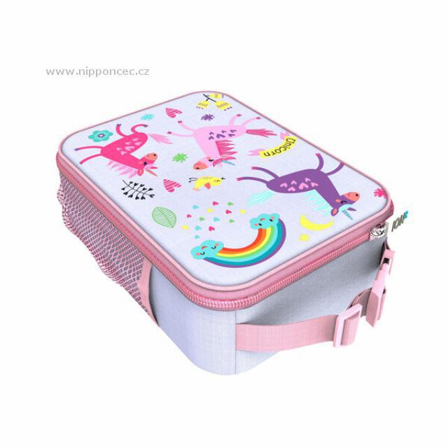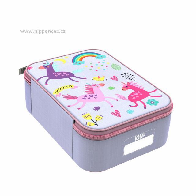 Velice praktická dětská termotaška ion8 - Unicorns je vyrobena z těch nejkvalitnějších materiálů. Lze v ní nejen přenášet, ale i skladovat svačiny či obědy. Na boku tašky je umístěna elastická síťovaná kapsa na lahev. Díky vypolstrování si taška uvnitř udrží svoji teplotu až 6 hodin a tím uchová potraviny déle čerstvé. Je snadno omyvatelná, lze ji prát v pračce na program jemné prádlo. Vzhledem k zipu po obvodu je do tašky snadný přístup, rozpojitelný nylonový popruh umožní snadné přenášení.