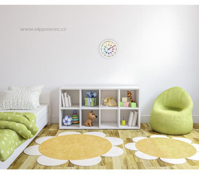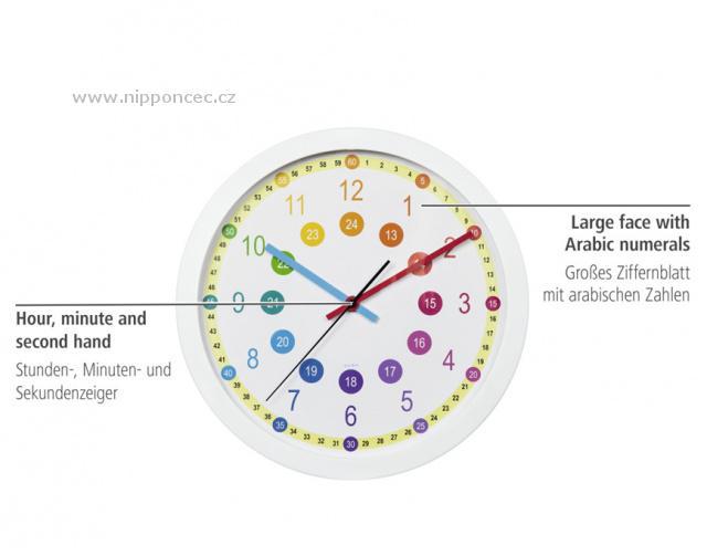 s dobře čitelnými a barevně rozlišenými arabskými číslicemi usnadní dětem výuku hodin a stanou se veselou dekorací jejích pokojíčků. Speciální způsob pohybu vteřinové ručičky zajišťuje tichý chod hodin bez hlasitého tikání a tak hodiny nebudou rušit vaše děti při spánku (hodiny mohou vydávat zvuk tichého bzučení).Dětské nástěnné hodiny Hama Easy Learning hravý design.