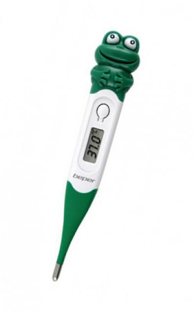Jednoduchý dětský digitální teploměr Beper ve veselém designu žabičky je vhodný pro klasické měření teploty v podpaží, zvládne však i orální a rektální měření. Disponuje i pamětí pro poslední měření, díky čemuž budete moci pohodlně sledovat vývoj tělesné teploty vašeho dítěte. Neobsahuje rtuť ani sklo, tudíž je ideálním a bezpečným pomocníkem pro měření teploty dětí.