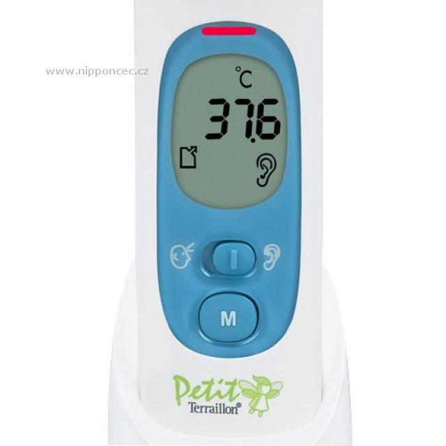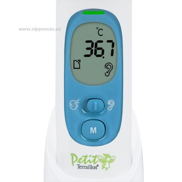 Teploměr Terraillon je přesný a rychlý, provádí 512 měření za sekundu, zobrazí nejvyšší teplotu za 1 vteřinu a má 10 pamětí. Použití je snadné - automaticky přepne způsob měření čelního na měření ušní odstraněním ochranného víčka. Displej teploměru je velký, dobře čitelný. Je vybaven automatickým vypnutím po 30ti vteřinách bez pohybu – šetří baterii.