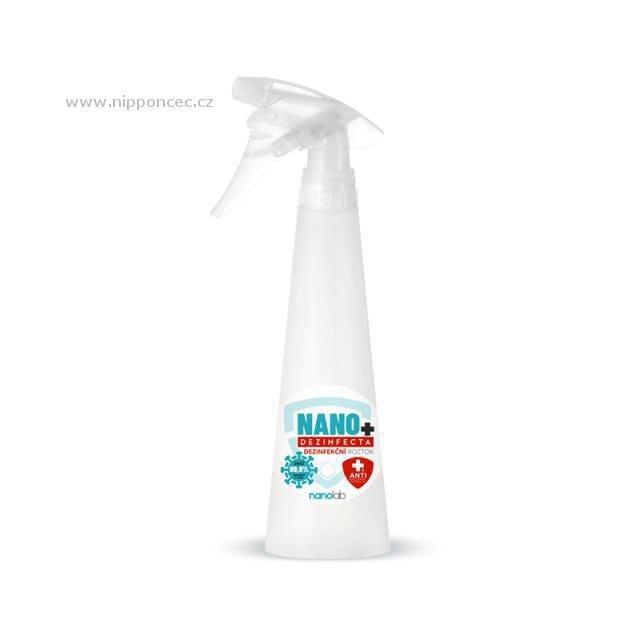 Koncentrovaný dezinfekční sprej NANO+ , přípravek osobní hygieny o objemu 350 ml na ruce a povrchy, účinný proti COVID 19, ničí až 99,9 % virů a bakterií. Dezinfekce má vysoce dlouhotrvající účinky, je velmi šetrná k pokožce, a je tak vhodná pro celou rodinu. Vaši pokožku zanechá nejen panensky čistou a voňavou, díky vonné esenci.